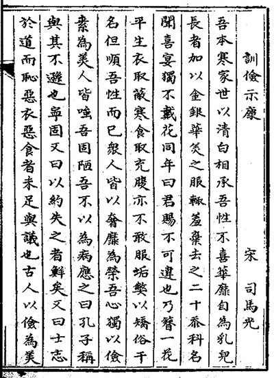 北宋司马光的名篇《训俭示康》,教导其子崇俭戒奢,选自江西省图书馆藏清代《古文辑略》。 图片来源:中华古籍智慧化服务平台